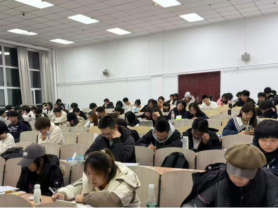 图为英语四级模拟大赛现场,同学们认真答题、秩序井然