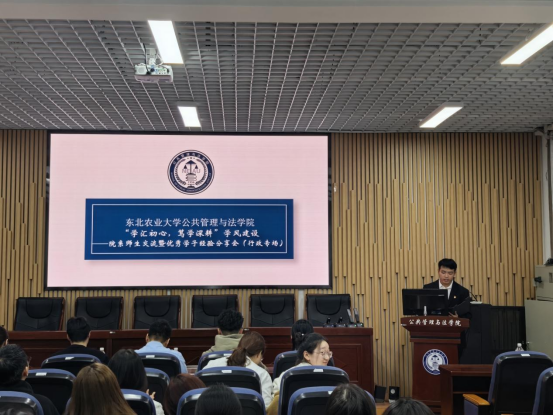 图为东北农业大学公共管理与法学院院系师生交流暨优秀学子经验分享会现场,师生面对面交流互动