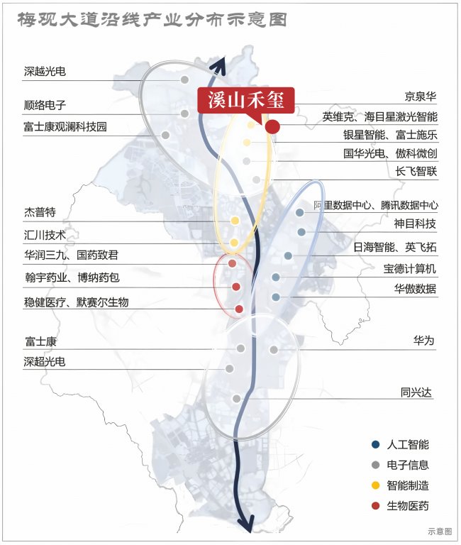 从数据来看,龙华区的产业转型已进入收获期。2025年,龙华区位列“迪百强区”全国第24位,国家高新技术企业突破4000家,以硬核产业实力构筑起湾区科创增长极。作为龙华区行政中心与市级功能中心所在地,观澜不仅是地理意义上的中芯,更是产业布局的“心脏”。根据《龙华区国土空间总体规划(2021-2035年)》,观澜承担着龙华北部科创中心与智能科技产业高地的战略定位,区域内银星科技园、华为、迈瑞医疗、英维克、中科飞测、立讯精密、华润三九等顶尖企业与园区云集,形成高浓度产业集群,触手可及产业脉搏。