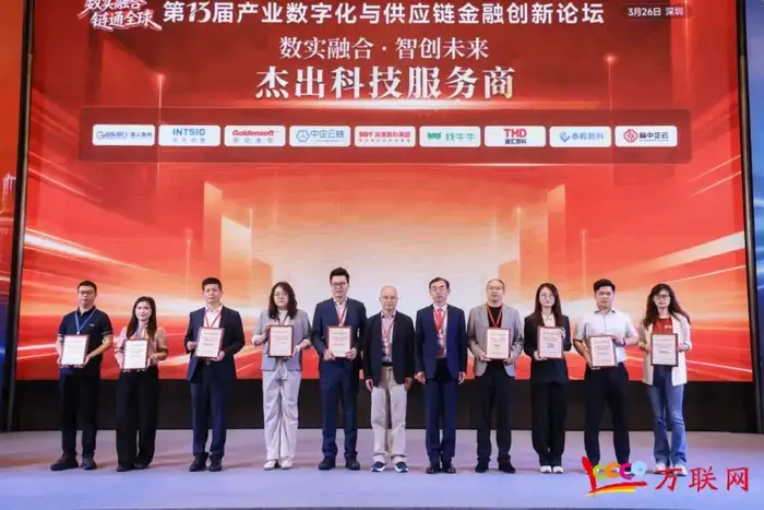 3月26日,2026年度供应链服务生态杰出企业评选结果榜单在由万联网主办并获得中企云链、深度数科集团、找牛牛、高达软件、南北软件、中软创智、海尔鑫海汇数科、享宇科技、金网络等合作伙伴以及中国人民大学中国供应链战略管理研究中心、万联供应链新质发展智库等机构鼎力支持的第十三届产业数字化与供应链金融创新论坛上正式公布,并为入选企业举行了荣誉颁奖授牌仪式,活动现场来自央国企、产业互联网平台、金融机构、金融科技公司等高层精英等近500人共同见证了这些优秀企业/机构的高光时刻。