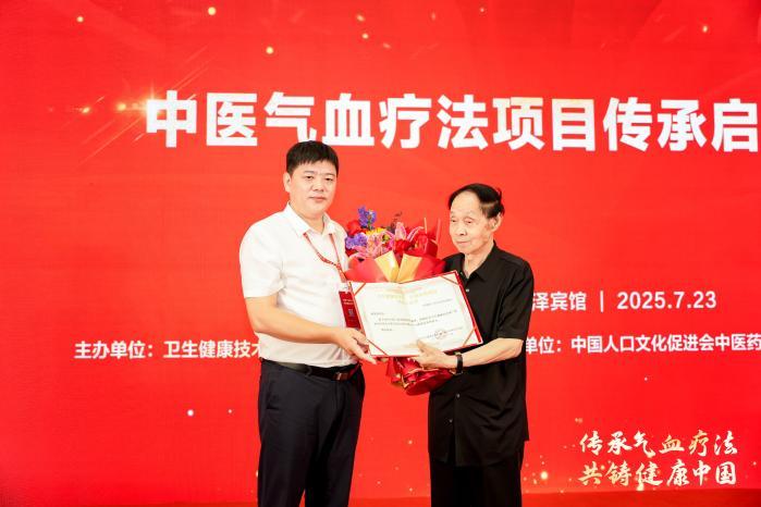 2025年11月深秋,由中国健康教育中心指导、全国卫生健康技术推广传承应用项目办公室主办的“中医气血派创始人姚登贵第二次收徒拜师大会”在北京举行。年已八旬的姚登贵先生端坐主席台,540余名志在赓续中医气血疗法的弟子,敬奉拜师帖、敬茶叩拜现场拜师,一时成为“杏林”盛事,引发各大媒体的争相报道。