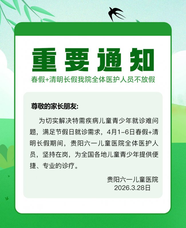 孩子的健康,是父母最大的心愿,也是我们医者最高的使命。这个春假+清明假期,当别人在欣赏春日美景时,您也可以为孩子播下一颗“健康”的种子。4月1日至6日,京黔儿科名医会诊团,就在您身边。