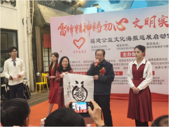 福文化的融入,更为本次公益活动增添了传统文化温度。90岁高龄的著名书法家方庆云先生亲临现场,他曾以446件福文化美术作品创下“个人创作最多福文化美术作品”世界纪录,此次专程为活动创作“公益福”书法作品赠予主办单位,“福中有福”作品赠送联办单位,同时携“五福”系列海报亮相巡展。方庆云先生表示,福文化是中华优秀传统文化的精髓,与雷锋精神“奉献、友爱、互助”的核心内涵高度契合,以福文化赋能公益,能让公益理念更深入人心。随后,书法家郭常文向一亩心田、香港卿马国际、福建福添名、福州名谷等爱心企业赠送作品,致谢其公益支持。