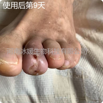 患者积极配合,严格执行无创方案。首次采用密封湿敷10小时,用量5毫升,湿敷结束后去除敷料开放愈合。24小时后,局部炎症明显减轻,疼痛得到缓解。此后每天进行喷雾或湿敷护理,连续使用一周,效果显著:肿胀持续消退,炎症逐渐减弱,脓性分泌物明显减少,新生肉芽组织由里向外生长明显,创面日渐干爽,愈合迹象显著(图二为第9天照片)。
