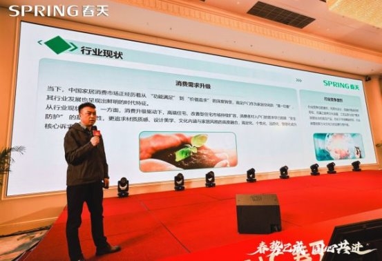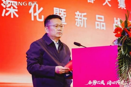 研判市场,把握机遇:他深入分析当前家居行业发展趋势,指出虽然市场面临挑战,但消费升级、品质需求、智能化、适老化趋势为行业带来新机遇,春天集团已做好充分准备。