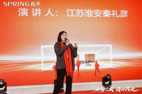 会议现场温情满满,她带来真实用户案例分享,用一线口碑印证品牌实力。消费者用户代表受邀登台发言,动情感谢春天集团过硬的产品品质与贴心周到的全程服务,称赞春天是有温度、有担当、值得信赖的家居品牌,朴实话语赢得全场热烈掌声。用户代表与吕董、吕总亲切合影留念,定格品牌与用户同心同行的温暖瞬间,也为 “春势・燎原计划” 注入最真实的口碑力量。