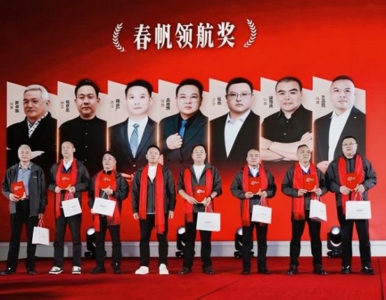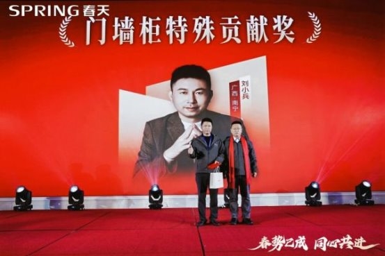 期间集团公司对过去一年表现突出的经销商伙伴进行隆重表彰,共评出优秀主播星耀奖、新锐突破奖、整家定制标杆奖、业绩先锋奖、门墙柜特殊贡献奖、春耕卓越奖、春帆领航奖等奖项,董事长吕新印,总经理吕骏鹏亲自为获奖经销商颁奖。