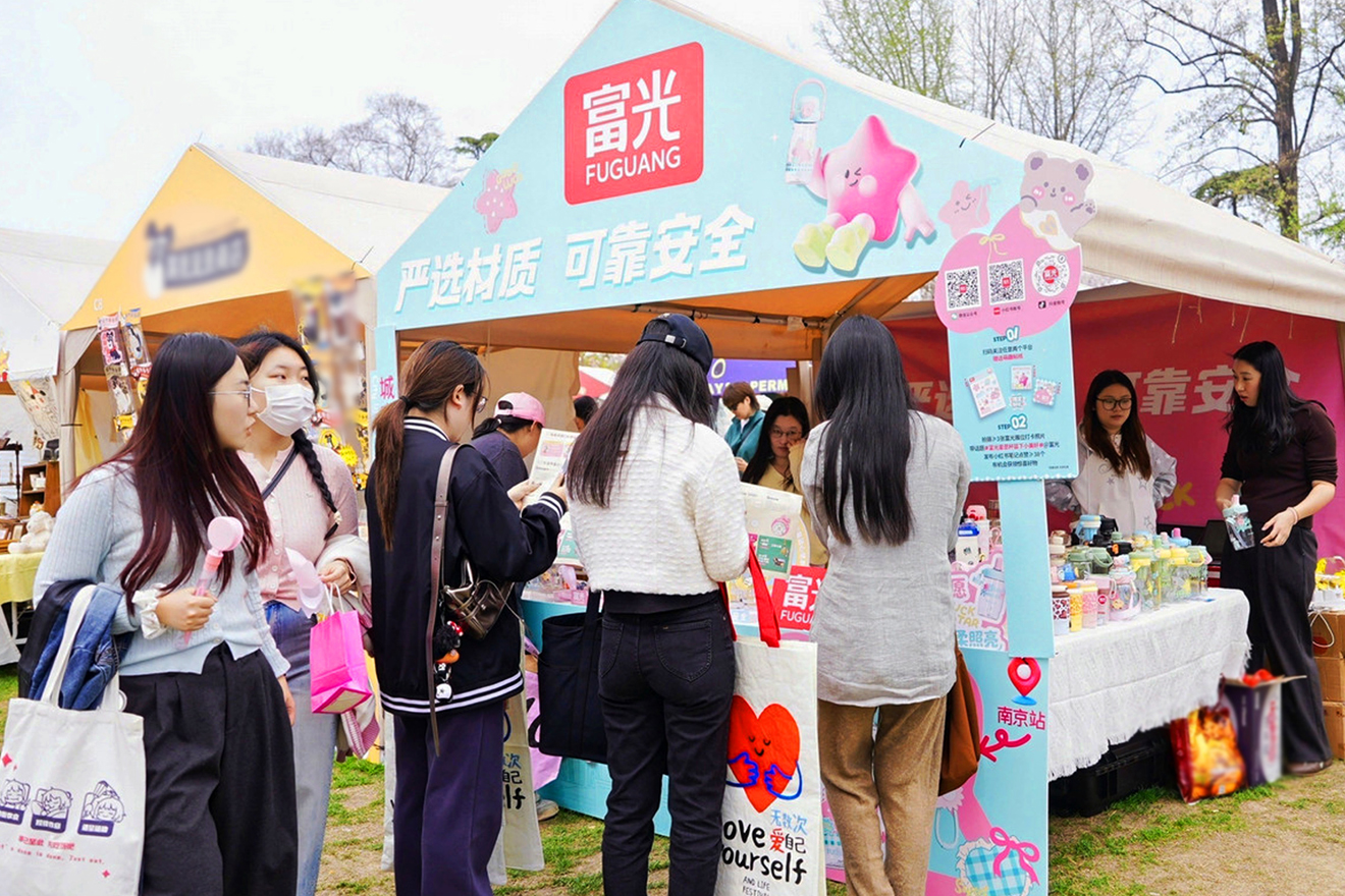 走进玄武湖樱洲,一抹充满生机的青草绿与柔和的诗意粉交织碰撞,那是富光为这个春天量身打造的展位。