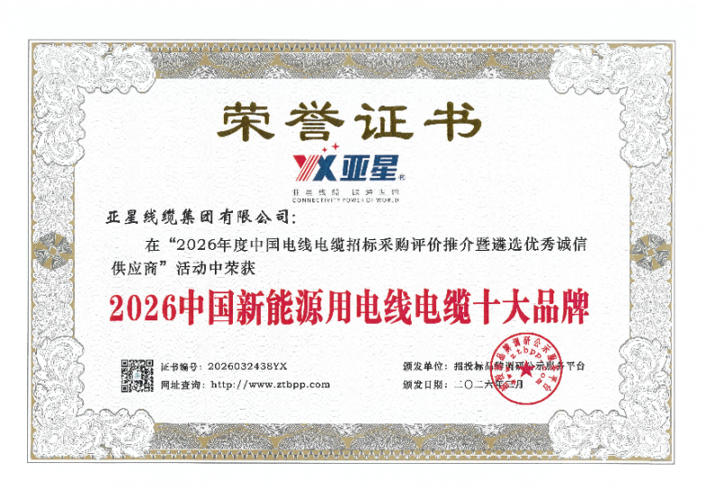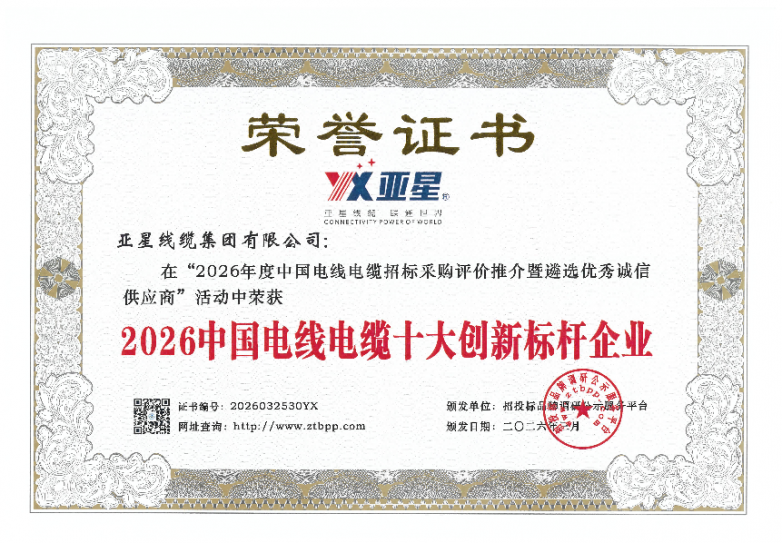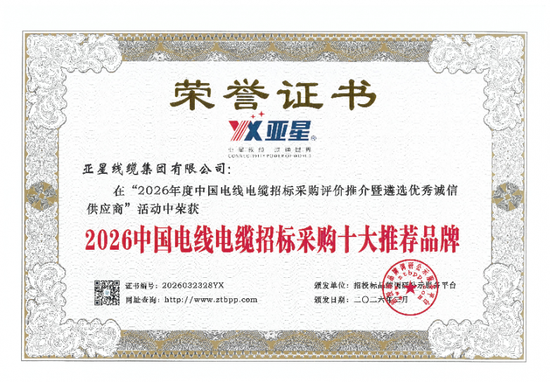 此次五项重磅荣誉的斩获,是招投标品牌调研公示服务平台、行业及市场对亚星线缆综合实力的权威肯定,更是对企业多年来匠心坚守、创新发展的高度认可。未来,亚星线缆将以此次获奖为新起点,持续深耕电线电缆主业,加大科技创新投入,不断优化产品结构、提升服务水平,助力推动行业高质量升级。