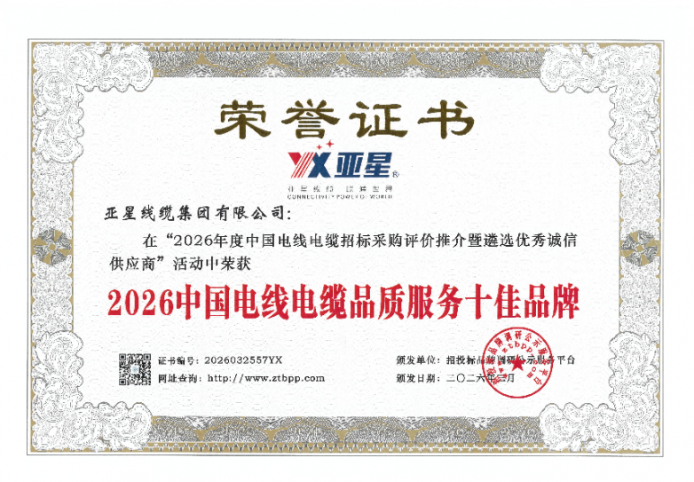 坚守品质底线,践行服务承诺。亚星线缆率先通过ISO9001质量管理体系、ISO24001环境管理体系等多项国内外权威认证,拥有进出口自营权,构建起全流程、全方位的质量管控体系,确保每一件产品都符合国际标准。同时,公司践行“诚信、和谐、务实、创新”的企业精神,建立起专业、高效的售前、售中、售后服务体系,用贴心服务赢得了国内外用户的广泛好评,此次“2026中国电线电缆品质服务十佳品牌”荣誉实至名归。
