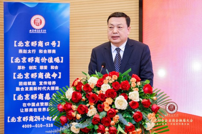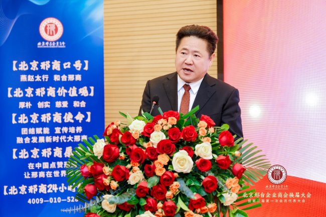 新当选会长郭延军现场发表就职感言,他首先对北京和邢台两地政府、各界嘉宾及全体会员的信任与支持表示衷心感谢,对第一届理事会的辛勤付出致以深深敬意。他表示,新一届理事会将扛起责任、勇担使命,传承商会优良传统,进一步完善商会治理体系,提升服务会员能力,聚焦企业发展痛点难点,搭建更高效的资源对接、政策解读、法律服务、融资协作平台;同时持续深化京邢两地联动,立足北京,服务首都经济发展,积极响应家乡发展号召,充分发挥商会桥梁作用,汇聚在京邢商智慧与力量,推动更多优质项目、先进技术、高端人才落地邢台,积极发挥党建引领作用,助力家乡产业升级、乡村振兴与民生改善,努力将商会打造成为“有凝聚力、有影响力、有美誉度、有担当力”的品牌商会,谱写京邢协同发展新篇章。
