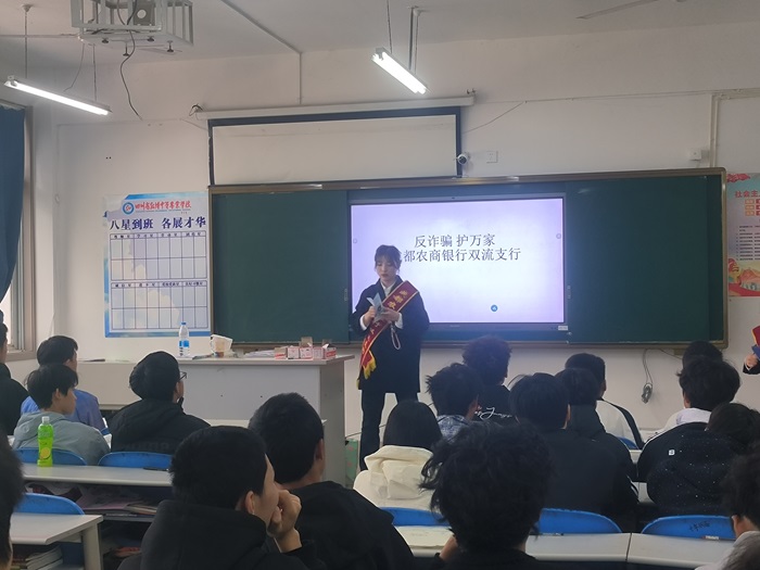 为进一步提升职业学校学生的风险防范意识,普及金融安全知识,切实守护青少年财产安全。近日,成都农商银行双流支行走进爱华学院,开展以“筑牢校园安全防线 护航青春健康成长”为主题的金融安全宣传活动,用专业知识为青年学子保驾护航。