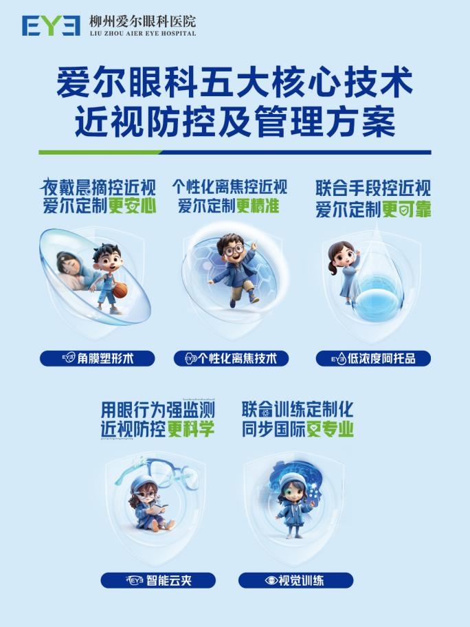 依托全球爱尔,柳州爱尔眼科医院以“5P 近视防控模式”(即Prevention预防为先、Prediction科学预测、Process流程标准化及个性化、Platform平台支撑、Parents家长守护)为核心,为3-18岁儿童青少年制定了“预防建档+科学预测+控制干预+科普教育”的一站式个性化诊疗方案,多维度、全方位守护孩子视力。