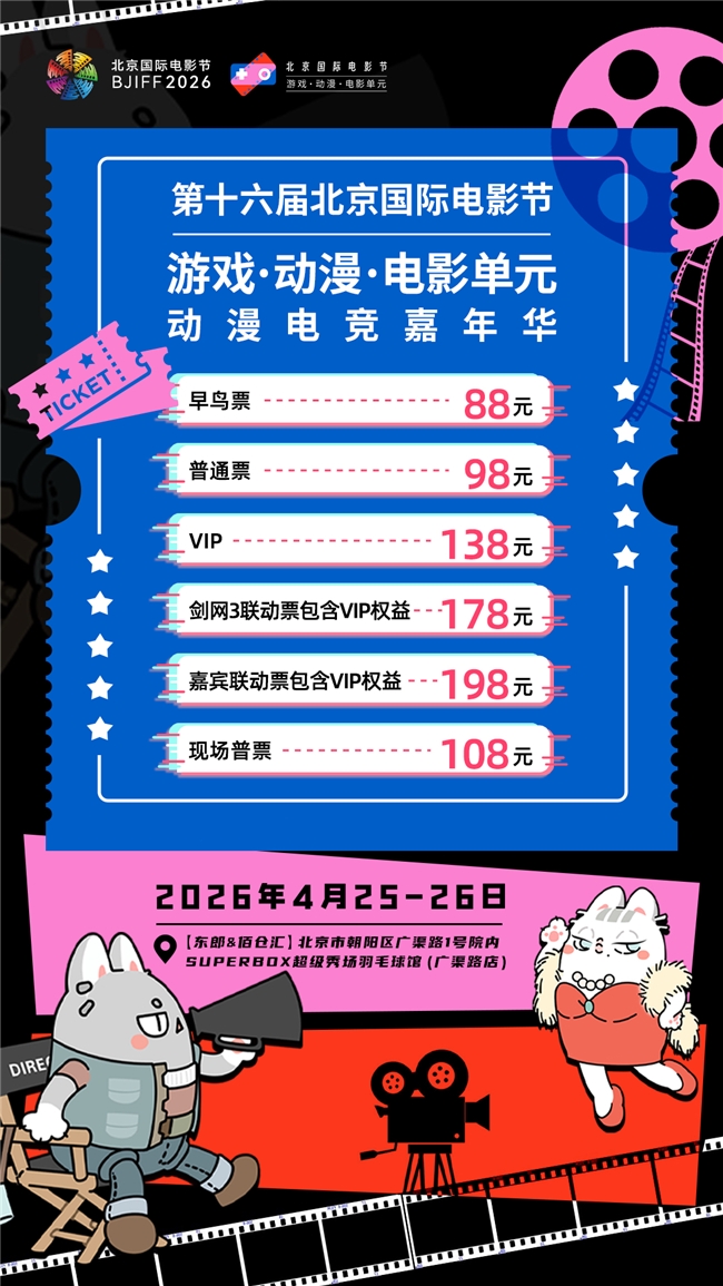 当游戏的热血、动漫的浪漫与电影的光影相遇,一场文化盛宴即将拉开帷幕。第十六届北京国际电影节·游戏·动漫·电影单元首次推出的动漫电竞嘉年华,将于2026年4月25日-26日在北京举办。这是一次里程碑式的次元破壁行动,更是一次改写行业版图的跨界盛宴。