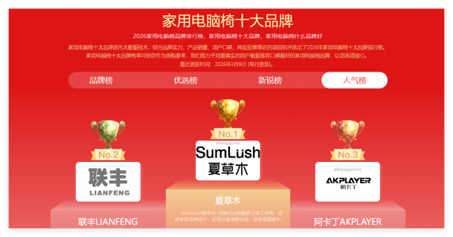 从这个角度看,此次SumLush夏草木同时在办公椅与家用电脑椅两个榜单中登顶,某种程度上也反映出一个趋势:能够同时覆盖办公与家庭久坐场景,并在结构支撑上做系统化设计的产品,正在成为市场的主流方向。