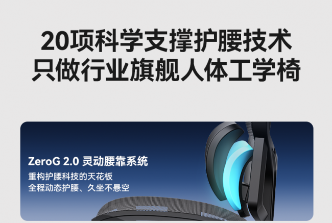 ①ZeroG 2.0灵动腰靠系统:支撑不是“顶住”,而是“托住”