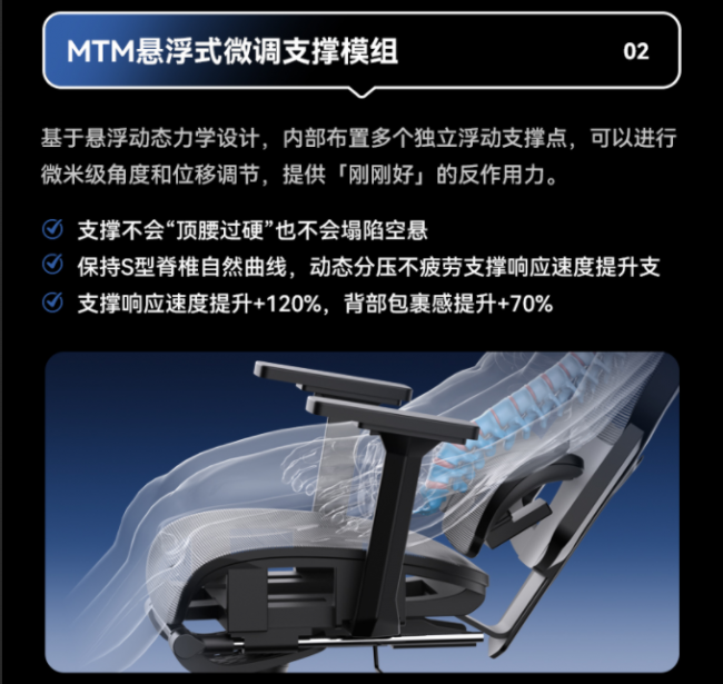 ④MTM悬浮式微调支撑模组:让支撑可以精细适配不同体型