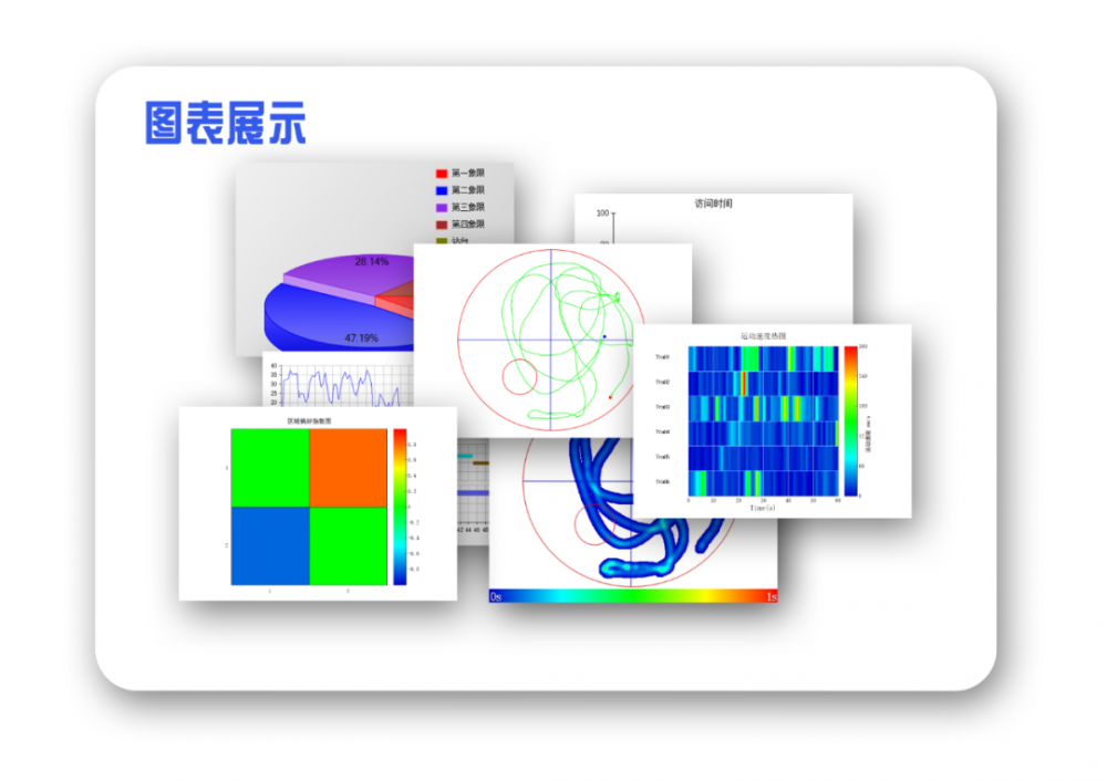 为了让动物指标记录的结果更便于科研分析和学术发表,VisuTrack打造了超丰富的图形、图表、图谱呈现体系,可将抽象的指标数据转化为直观的可视化内容,且所有呈现效果均符合各类核心期刊的发表标准。软件能根据动物指标记录的数据,自动生成动物轨迹图、热图、3D图、区域偏好图、精细行为图谱、时序图、节律图、速度热图等行为图谱,同时可生成数据直方图、饼状图等统计图表,科研人员可对图元进行个性化设置编辑,支持多倍无损放大无锯齿,满足不同期刊的发表要求。可视化的呈现方式,让科研人员能更直观地分析动物行为的规律和指标的变化趋势,也让科研论文的图表更具专业性和说服力。此外,软件支持可视化结果的一键导出,大幅提升了科研论文的写作效率。