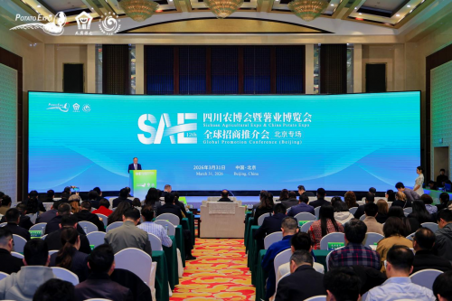 阳春三月,生机盎然。3月31日,由四川国际博览集团主办的第十二届四川农业博览会(简称“农博会”)暨第十六届中国国际薯业博览会(简称“薯博会”)全球招商推介会在北京隆重启幕。这不仅是一次“天府粮仓”精品主动叩开华北核心消费市场大门的成功展示,也是一个面向全球展示四川农博会的平台。活动邀请海光食品、佳乐酒业等22家展商代表和北京四川企业商会、北京农产品流通协会等68家采购商到场,并邀请摩尔多瓦共和国、纳米比亚共和国驻华大使及19个国家的31名外宾出席。通过招商推介和精准产销对接,让农博会、薯博会特色展品通过首都的广阔平台,走向全国、链接全球。
