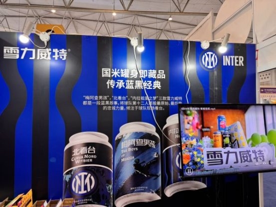 此次参展,雪力威特以国际米兰官方授权精酿为核心,打造了充满蓝黑文化氛围的专属展位,成为展会期间的一大亮点。展位整体融入国际米兰经典蓝黑配色,同步播放球队比赛精彩时刻,精准吸引了众多球迷与行业人士驻足围观、交流品鉴,让现场氛围持续升温。此次展出的三款核心产品——「梅阿查男孩-美式IPA」「北看台-比利时小麦」「内拉祖里之梦-皮尔森」,均为国际米兰官方授权精酿,将球队文化与精酿工艺深度融合,既传承了蓝黑经典,也彰显了雪力威特的匠心酿造实力。