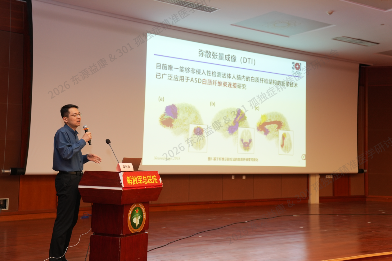 解放军总医院李世俊教授分享了《自由水矫正磁共振成像在孤独症儿童早期诊断的临床研究与应用》,指出结合肠道菌群标志物与神经影像特征,可实现孤独症的早期精准分型 —— 通过检测粪便菌群组成、短链脂肪酸浓度等指标,结合磁共振成像对脑白质微结构的分析,能区分不同亚型孤独症患儿,为后续干预提供个体化依据。