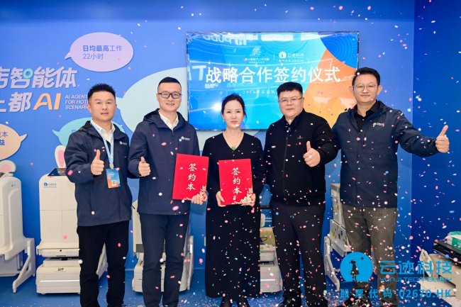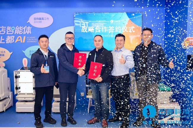 本次战略签约仪式成为展会瞩目焦点。云迹科技与凤悦酒店及度假村、锦颐酒店集团、陌上酒店集团、慧友酒店集团开启深度战略合作,2026年将以酒店智能体为核心引擎,共同打造智能酒店新标杆。