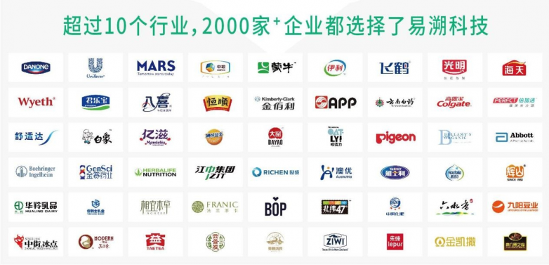 ·食品饮料行业:易溯科技与脉动、蒙牛、百事、君乐宝、欧力、怡宝、菓子熟了等知名品牌长期合作。