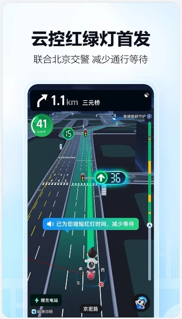 ·云控红绿灯:高德地图联合北京交警率先推出,在支持的路口和红绿灯系统联动,减少通行等待时间,高效出行原来可以这么简单。