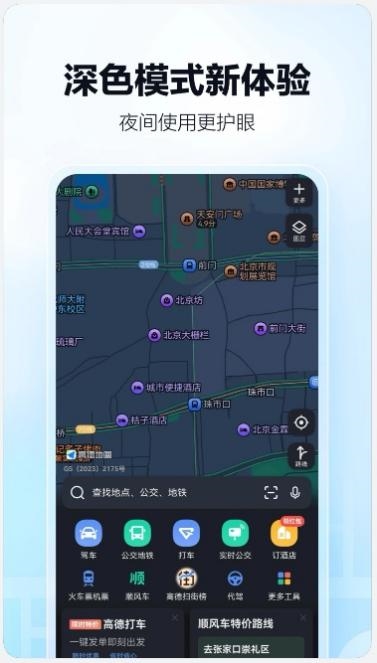 夜间开车导航,使用全新升级的深色模式,界面柔和不刺眼,信息依然清晰可读,行车安全极大提升。
