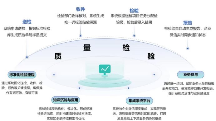 通过构建质量检验系统,不仅能固化标准化检验流程,还能将集团质量管理理念、知识体系与流程规范融入系统,进而搭建起以知识驱动为核心的质量管理体系,并使其成为企业知识沉淀与流程标准化的重要载体。