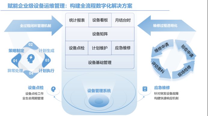 基于活字格低代码开发平台构建的设备管理系统旨在通过数字化手段提升企业设备运行管理效率和维护响应能力。系统聚焦设备全生命周期管理中的运行、点检、应急维修响应与预防性维护等关键环节,通过设备信息数字化、维修流程标准化等实现设备管理全流程覆盖,为企业设备稳定运行、运维效率提升及决策支持提供数字化支撑。