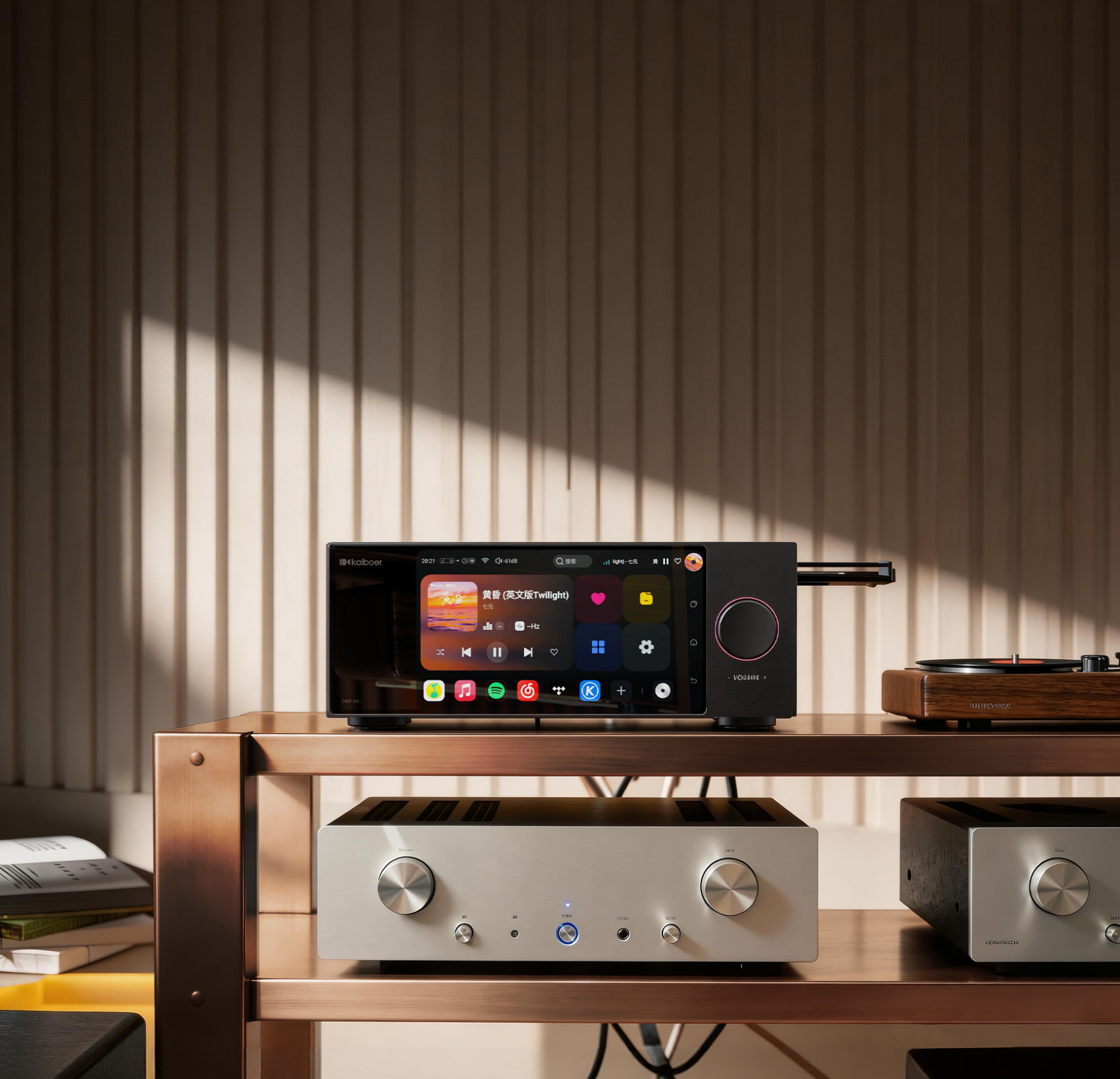 HiFi音频演进过程中,专业高阶的分体式系统,与便捷的有源音响玩法,始终是烧友的两大核心选择。当越来越多高端有源HiFi音响凭借内置DAC与功放的一体化设计,成为桌面与客厅的热门之选,却依然受限于“依赖PC/Pad作为音源”的痛点——专业HiFi数播转盘的缺位,让有源音响的硬件潜力难以完全释放,成为体验升级的一大瓶颈。开博尔全新推出的DMP-K8纯智慧数播音乐转盘,以专业HiFi生态为根基,打破场景边界,既服务于分体式发烧系统,更能成为高阶有源HiFi音响的专属音源搭档,让一步到位的HiFi体验成为可能。