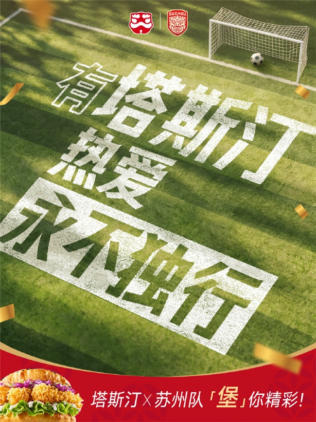 据悉,塔斯汀还为广大消费者准备了一份观赛礼物。后续不仅会在苏州赛区的主场开展线下球迷互动活动,还将规划苏超观赛加油主题店,并推出专属加油套餐,活动详细信息,将通过塔斯汀官方渠道陆续发布。