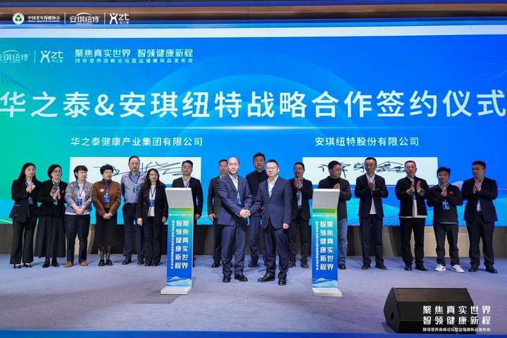 安琪纽特董事长谭荣鑫、华之泰董事长王浩分别致辞,就本次战略合作与新品发布,安琪纽特将依托酵母营养科研优势,结合华之泰的线下服务网络,打造 “科技研发 + 深度服务” 的银发健康新模式,打通科研成果到客户身边的最后一公里,让专业健康守护真正惠及每一位银发群体。