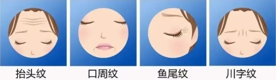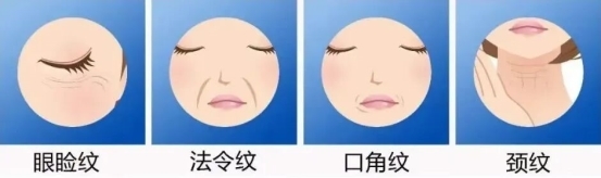 若发现从额部至颈部,逐渐出现抬头纹、眉间纹、鱼尾纹、法令纹、嘴角纹、唇纹、木偶纹、颈纹等,即使不做表情也依然存在且纹路不断加深、增多,则可能提示面部已出现深层衰老迹象。