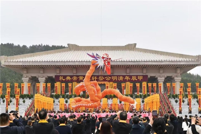 典礼现场,56面象征中华民族团结的龙旗迎风飘扬。全国人大常委会副委员长洛桑江村,全国政协副主席、农工党中央常务副主席杨震等多位领导,中央统战部、国务院台办、国务院侨办、各民主党派、全国总工会、中国侨联、全国劳模代表,以及海内外参祭嘉宾齐聚于此,共同缅怀中华民族的人文初祖轩辕黄帝。