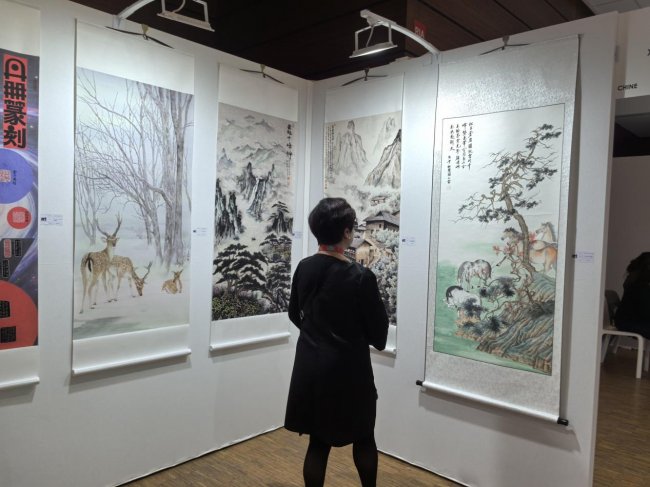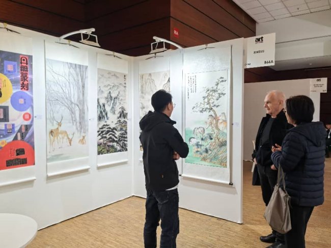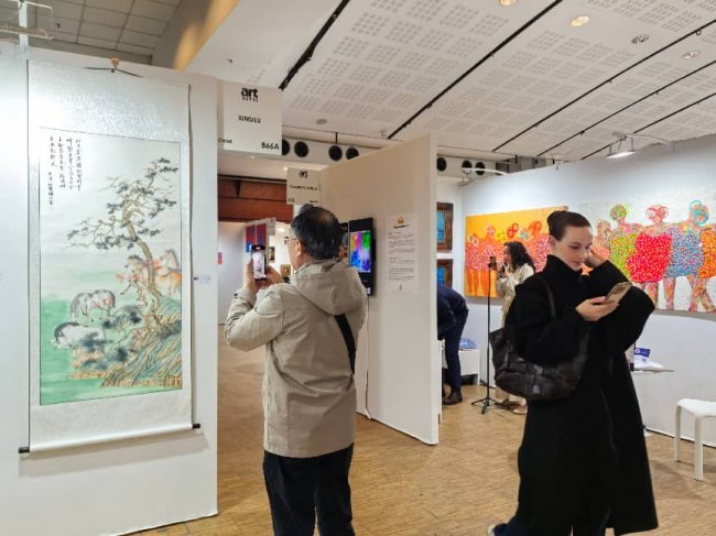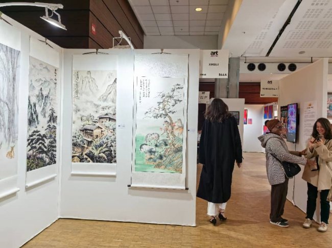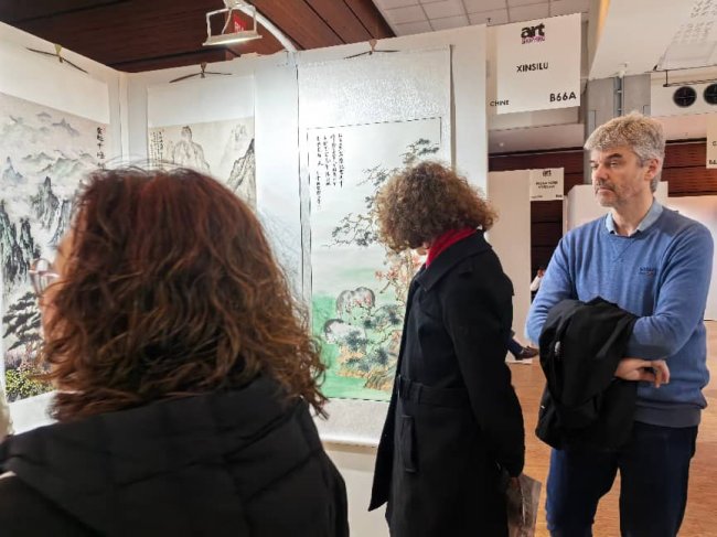 在展会现场,王小蒙女士的作品吸引了众多国际观众与藏家驻足观赏。一位外国观众在作品前驻足良久,用镜头记录下这份来自东方的艺术之美,也印证了艺术无国界的真谛 —— 不同文化背景下的人们,总能在优秀的艺术作品中找到情感的共鸣。此次参展,不仅是王小蒙女士个人艺术创作的国际展示,更是中国传统书画艺术走向世界、与国际艺术对话的生动实践,为中法文化交流写下了温暖而有力的一笔。