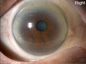 叔叔右眼眼部图:晶状体混浊变白