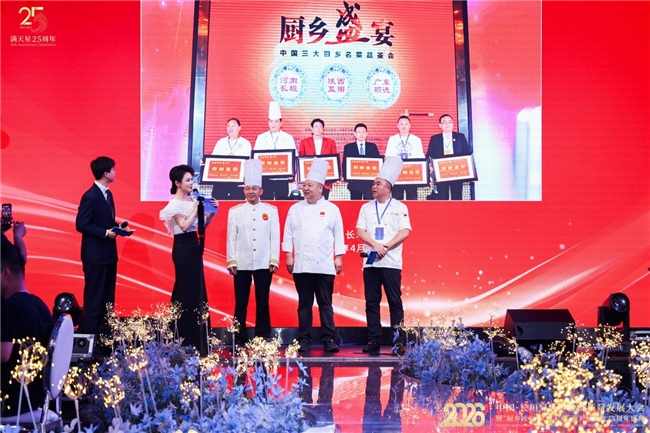 2026年4月16日晚,2026中国·长垣烹饪产业高质量发展大会暨“厨乡匠心 星耀未来”满天星餐饮25周年盛典的压轴环节——厨乡美食品鉴宴,在河南长垣满天星食博园总店盛大启幕。这场汇聚了海内外数百位餐饮界领袖、行业精英及三大厨师之乡代表的美食盛宴,以一道菜的迭代史串联起千年厨乡文脉,以一场跨越十年的再聚首致敬匠心传承,堪称厨乡品鉴宴“天花板”。