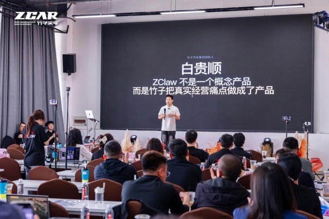 本次沙龙的核心高潮,由竹子汽车集团CTO兼竹子科技CEO刘毅带来的“车小白龙虾”(ZClaw)AI获客平台发布会点燃。刘毅以技术视角与商业逻辑并重的演讲,系统阐述了竹子汽车集团在AI赋能汽车新零售领域的战略思考与落地成果。作为专为汽车零售行业打造的AI获客平台,车小白龙虾基于OpenClaw技术框架,聚焦汽车经销商 “获客难、成本高、转化低” 的核心痛点,以AI重构新媒体运营与用户获客链路,实现线索获取、客户触达、转化跟进的全流程智能化,为行业提供了低成本、高效率的获客新方案,标志着竹子汽车集团在AI赋能汽车新零售领域迈出了关键一步。