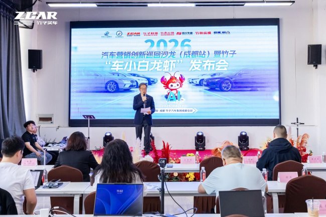 2026年4月17日,由中国汽车流通协会新营销分会主办,竹子汽车集团承办的“2026汽车营销创新巡回沙龙(成都站)暨竹子‘车小白龙虾’发布会”,在竹子汽车集团成都总部圆满收官。本次活动以“趋势解读+标杆游学+干货分享+重磅发布”的全流程形式展开,汇聚了行业权威专家、头部经销商集团高管、新媒体及AI技术领域先锋。