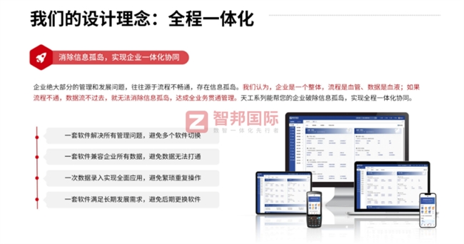 智邦国际以全程一体化ERP为核心,打造覆盖企业全业务场景的数智化管理解决方案,从底层架构实现采购、生产、库存、销售、财务、人资等全流程贯通,为企业构建“数据实时同步、流程闭环可控、全局协同高效”的管理体系,全方位提升企业抗风险能力。