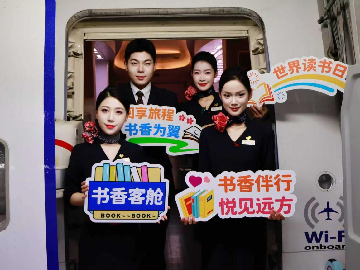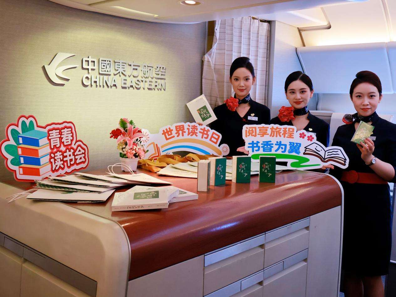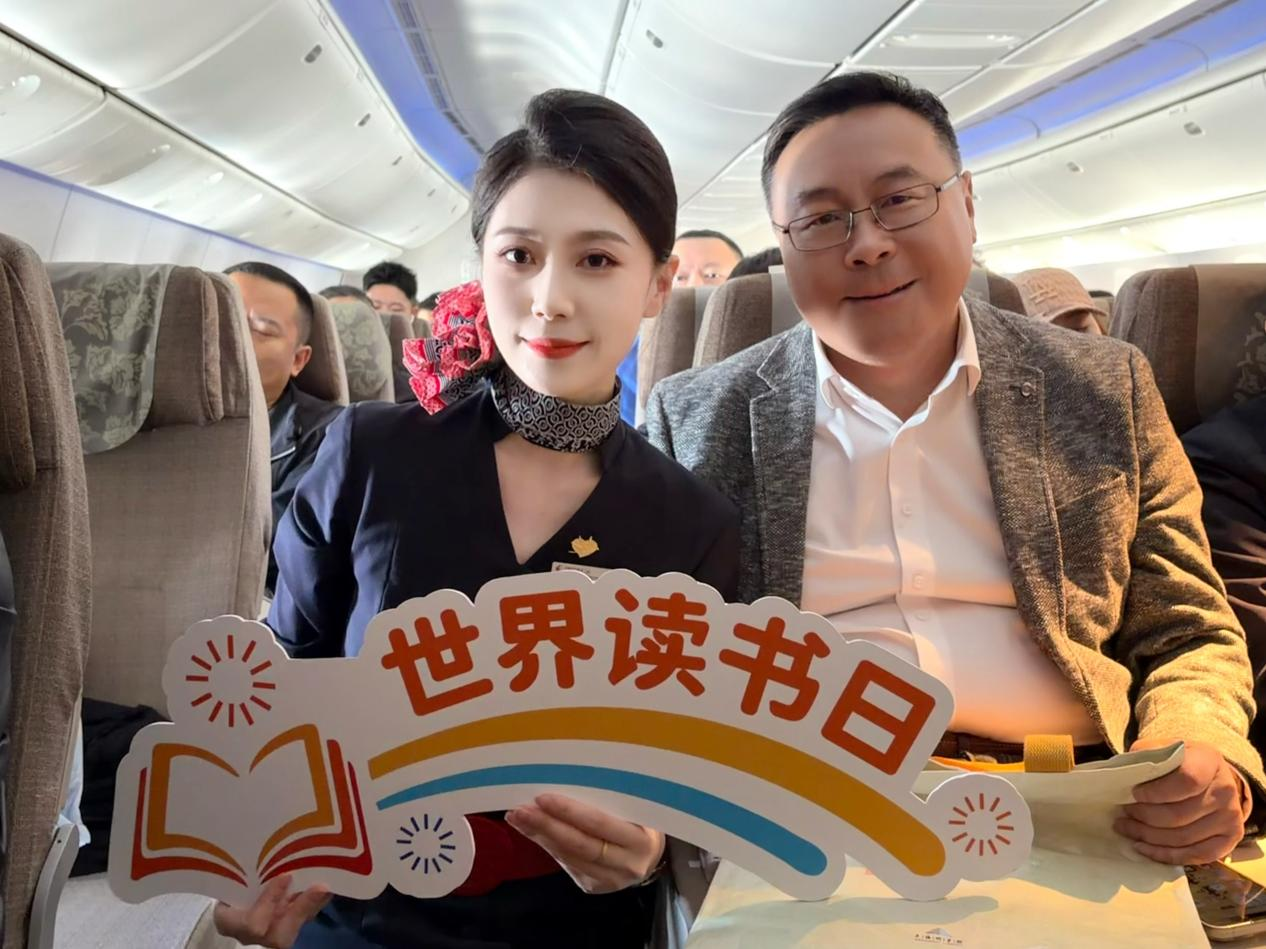 “书香最抵人心,阅读丈量世界。今天恰逢第31个‘世界读书日’,东航邀请您一同开启主题阅读之旅。让我们在文字中开阔眼界,在书香里丰盈内心,感受阅读带来的力量与美好。”4月23日,伴随特色客舱广播,东航“书香伴行 阅见远方”全民阅读活动周主题航班MU5403从上海虹桥国际机场起飞,飞往成都双流国际机场。此次主题航班是在全国首个“全民阅读活动周”之际,东航携手上海图书馆共同打造,在云端传递书香。