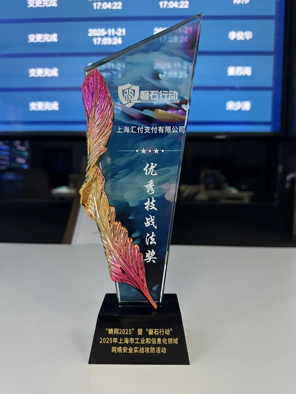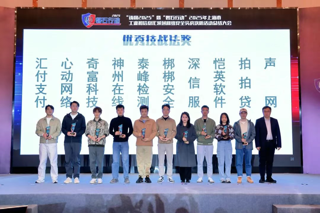 近日,上海市通信管理局携手市委网信办、市经信委、市公安局、市教委、普陀区人民政府及长兴岛管委会,共同举办的“铸网2025”暨“磐石行动”2025年上海市工业和信息化领域网络安全实战攻防活动总结大会圆满落幕。在此次盛会上,汇付支付凭借卓越的网络安全防护技术和专业的团队实力,荣获“优秀技战法奖”,其信息安全团队的核心成员也荣获“优秀个人奖”。