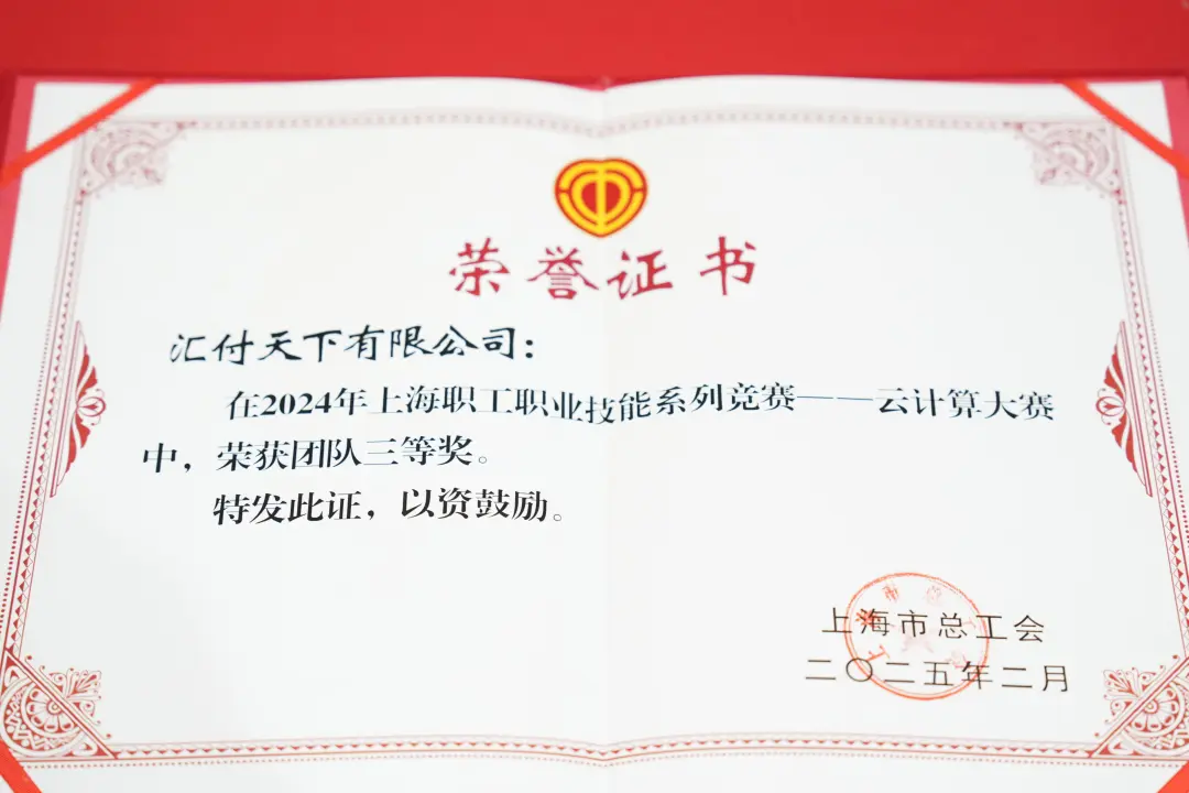 汇付支付在科技人才与实战能力方面的优势并非首次显现。在之前举办的“2024上海职工职业技能系列竞赛——云计算大赛”中,汇付支付的两位选手分别获得决赛个人第四和第六名,均荣获二等奖,公司也荣获团队三等奖,刷新了在该赛事中的获奖记录。这一成绩与“磐石行动”中的卓越表现共同彰显了汇付支付在技术人才培养与实战能力建设上的持续投入和显著成效。