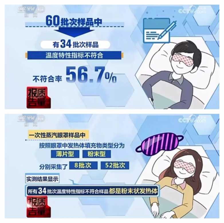 央视报道:蒸汽眼罩良莠不齐,温度特性超标问题显著
