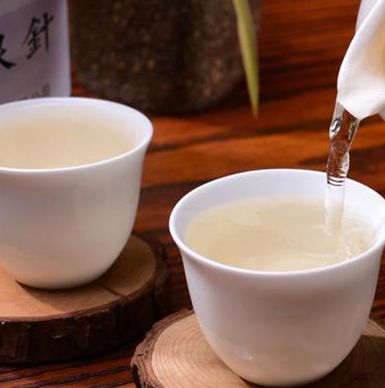 2、真品的白毫银针茶外形披满了白毫故而命名。白毫的茶汤颜色黄而清澈明亮。
