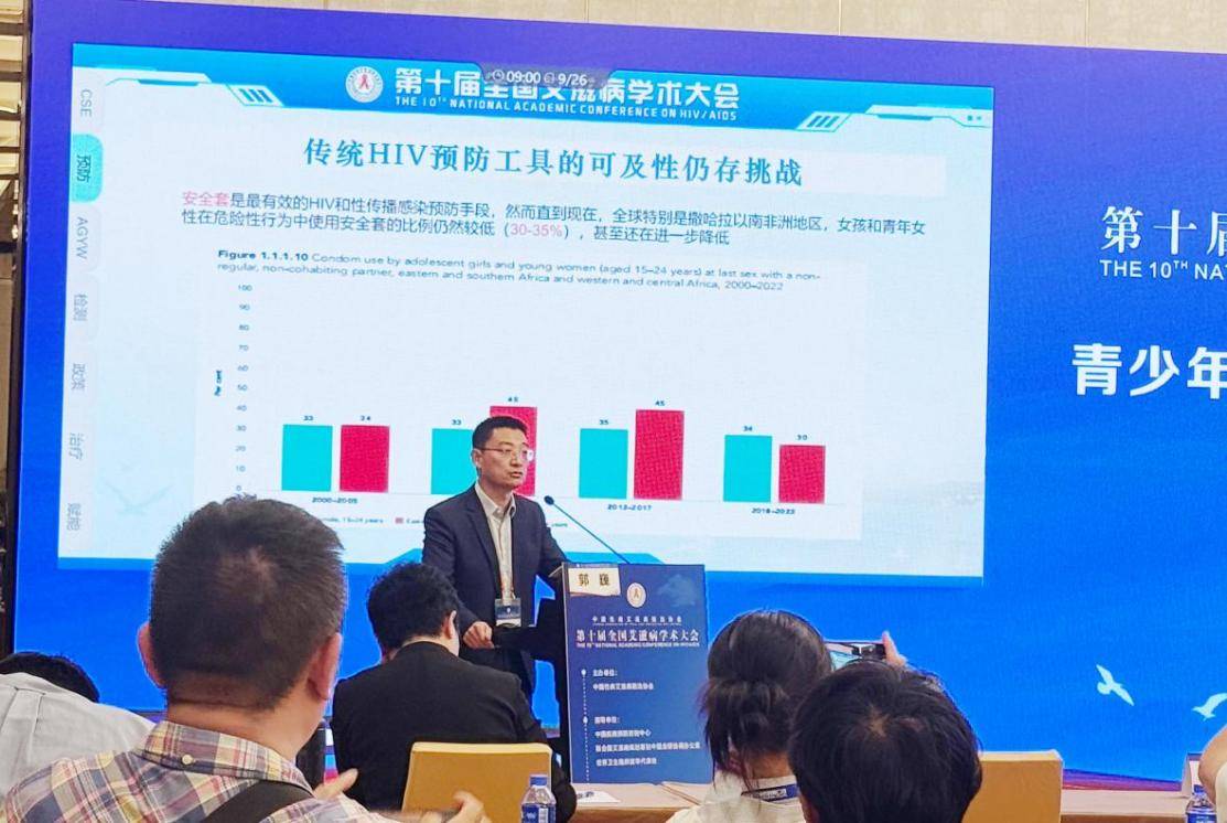 联合国艾滋病规划署驻中国全球协调中心郭巍研究员表示,截至2023年,全球15-24岁青年群体中感染HIV(人类免疫缺陷病毒)总数达310万人,其中2023年新发青年感染者约为36万人。郭巍研究员认为,广义来讲,每一个发生过未使用安全套性行为的人群都可能成为潜在艾滋病感染的重点人群,对此他强调“安全套是最有效的预防艾滋病和性传播感染的手段”,并倡导“安全套使用的推广不仅要面向重点人群,更要向一般人群扩展”。
