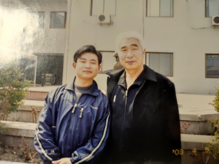 刘君合(左一)拜师武术泰斗门惠丰(右一),图为师生合照