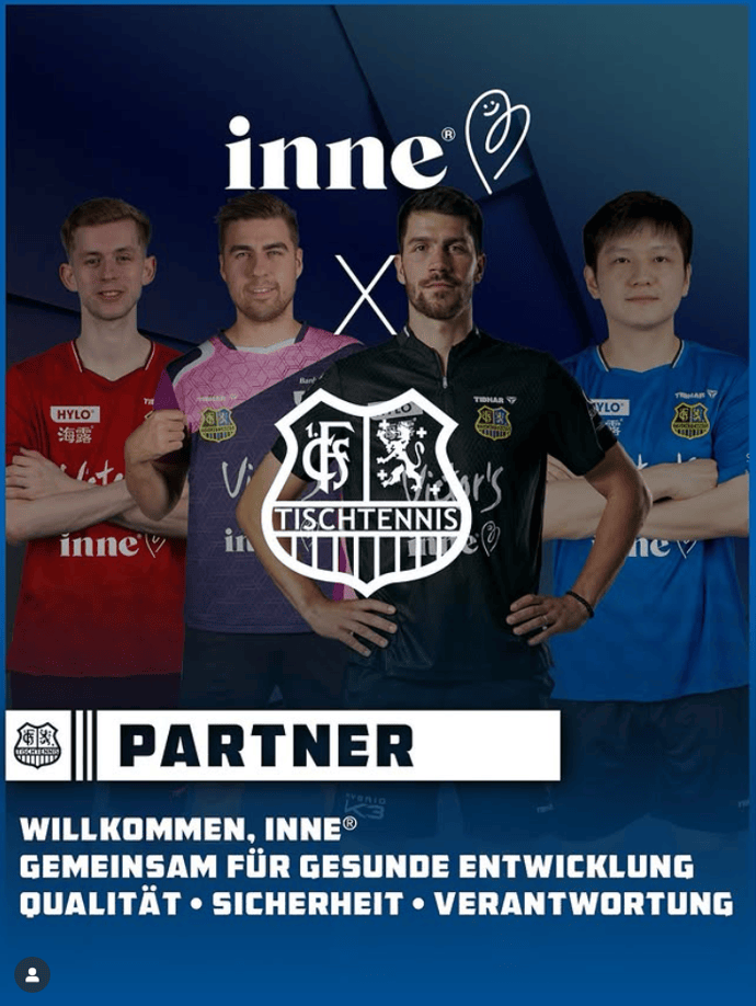 值得一提的是,inne还于近期携手德国顶级乒乓球俱乐部——萨尔布吕肯乒乓球俱乐部(1.FC Saarbrücken TT),通过跨界合作将科学营养与竞技体育相结合,传递健康与拼搏的价值理念,鼓励年轻一代茁壮成长。